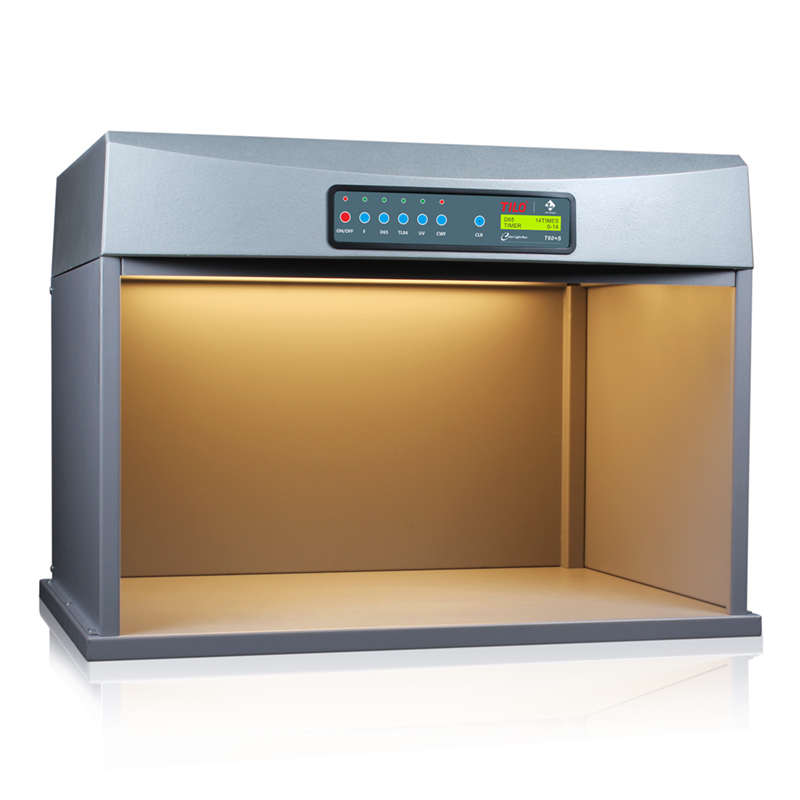 T60+S标准光源对色灯箱广泛应用于纺织、玩具、印染、塑胶、油漆、油墨、印刷、颜料、化工、陶瓷、鞋业、皮革、五金、食品、化妆品等行业 材料的色牢度的目测评定、配色打样、鉴别色差及荧光物质等,使试样、生产、质检、验收在相同的标准光源下进行,准确校对货品的颜色偏差,保证货品之颜色的品质符合要求。从而提高产品质量和市场竞争力。