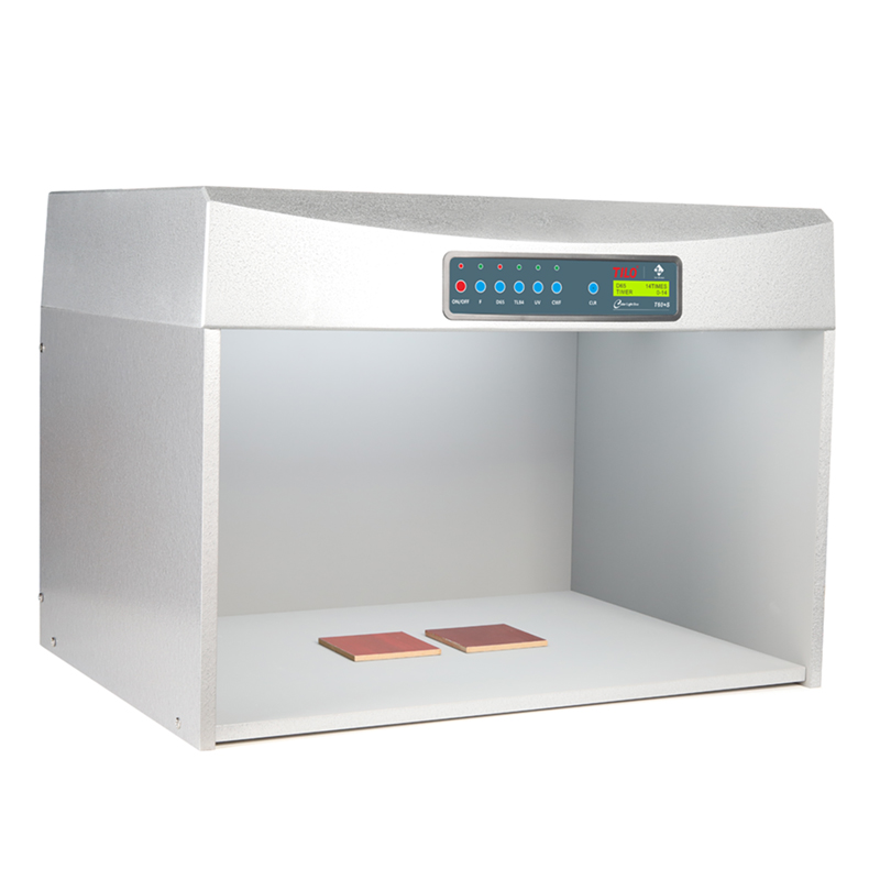 在生产实际中,多数是在光源的照射下工作,而每种光源均带有一定颜色。这就给正确判断原稿或产品颜色带来一定困难,色光下观色,色彩变化一般是相同色变浅,补色变暗,例如:红光下观色,红变浅,黄变橙,绿变暗,青变暗,白变红。绿光下观色,绿变浅,青变浅,黄变绿黄,红变黑,白变绿.黄光下观色,黄变浅,品红变红,青变绿,蓝变黑,白变黄。蓝光下观色,蓝变浅,青变浅,绿变暗,黄变黑,白变蓝.在印刷车间,一般都选择色温较高(3500~4100K),显色系数较好的日光灯作为看样光源,但要注意日光灯略偏蓝紫色。所以工业生产商拥有一款可以提供标准光源的标准光源箱是非常重要的。
